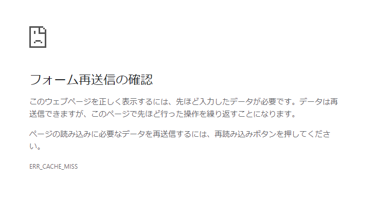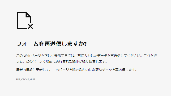 本ツールの操作中にブラウザバックをした際に下記の画面が表示されることがあります。